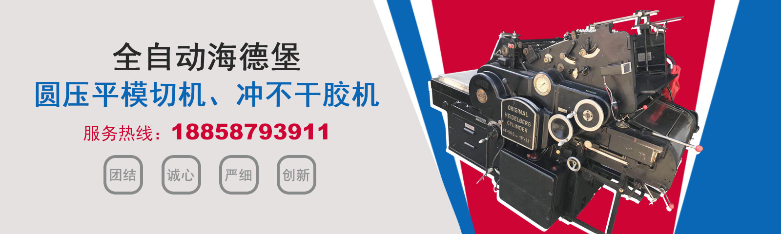瑞安市恒柯機械廠(www.wzhkjx_com.jinpaitaoci.cn)是國內專業制造銷售全自動模切機,全自動燙金機,圓壓平模切機,圓壓平燙金機,滾筒燙金機,沖不干膠機,海德堡凸印機.銷售的產品系列規格齊全,產品具有速度快,壓力均勻,套印準確等特點。